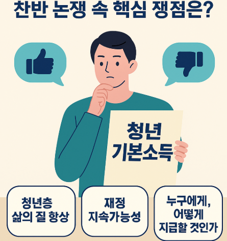 청년기본소득을 둘러싼 찬반 논쟁의 핵심 쟁점은 크게 세 가지입니다.